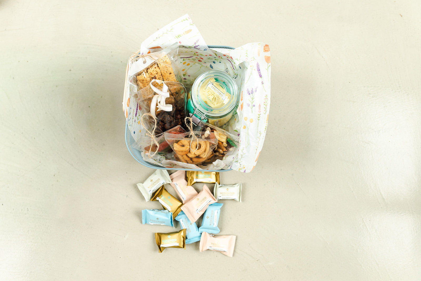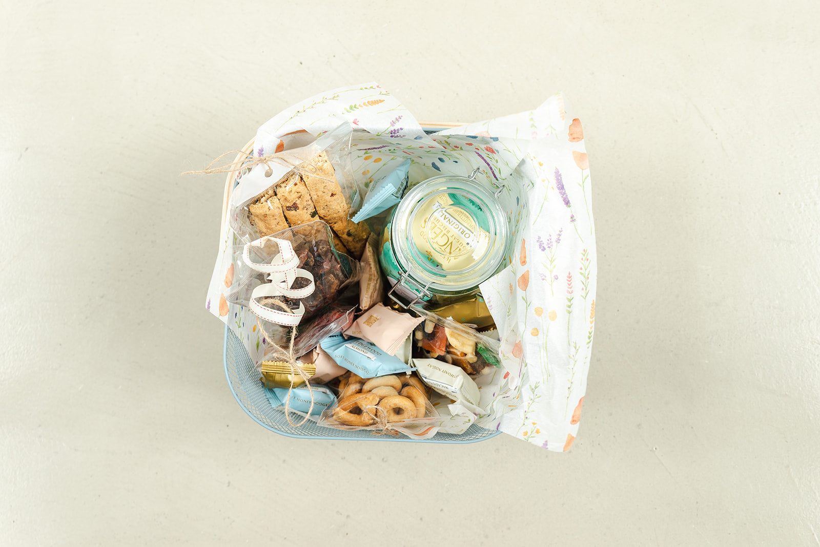 A hamper brimming with hand-picked delights - artisanal nougat, decadent biscuits, delicious rusks, savoury nibbles & ethically sourced single origin coffee beans or ground coffee.